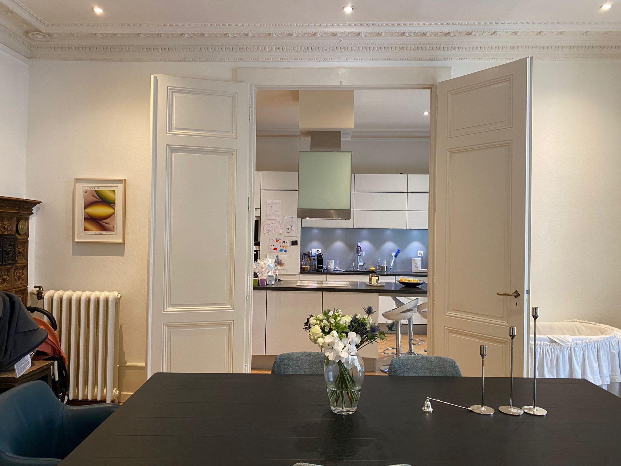 Situé dans un bel immeuble de la fin du XIXème siècle, ce superbe appartement jouit d'une situation privilégiée à quelques pas du lac, au centre-ville.