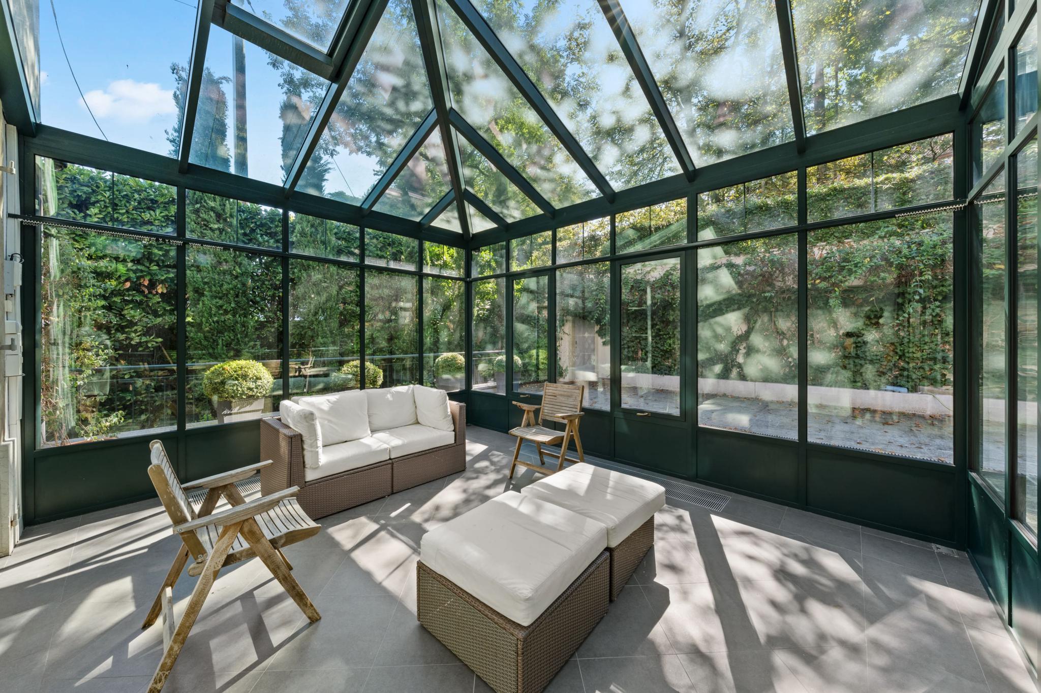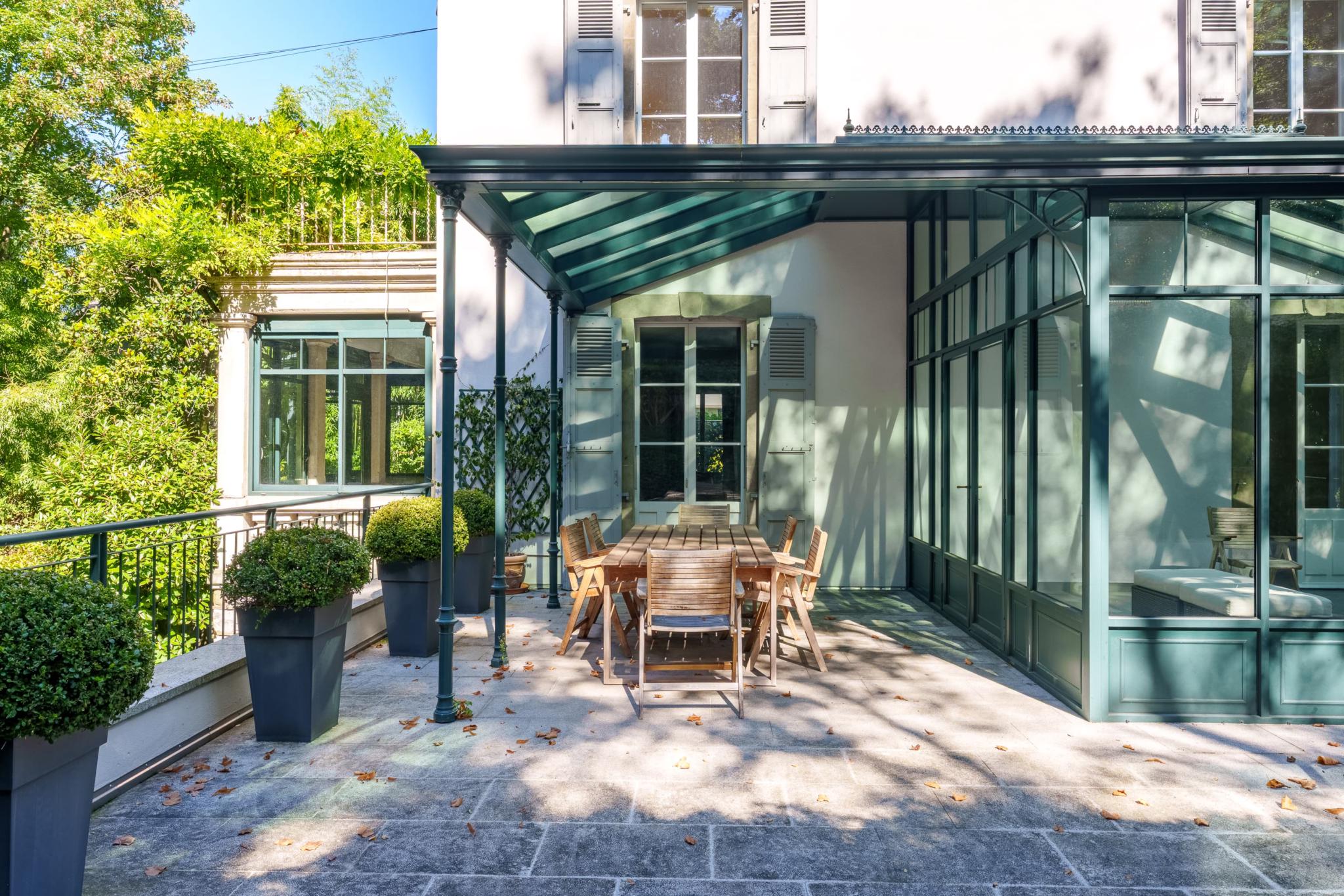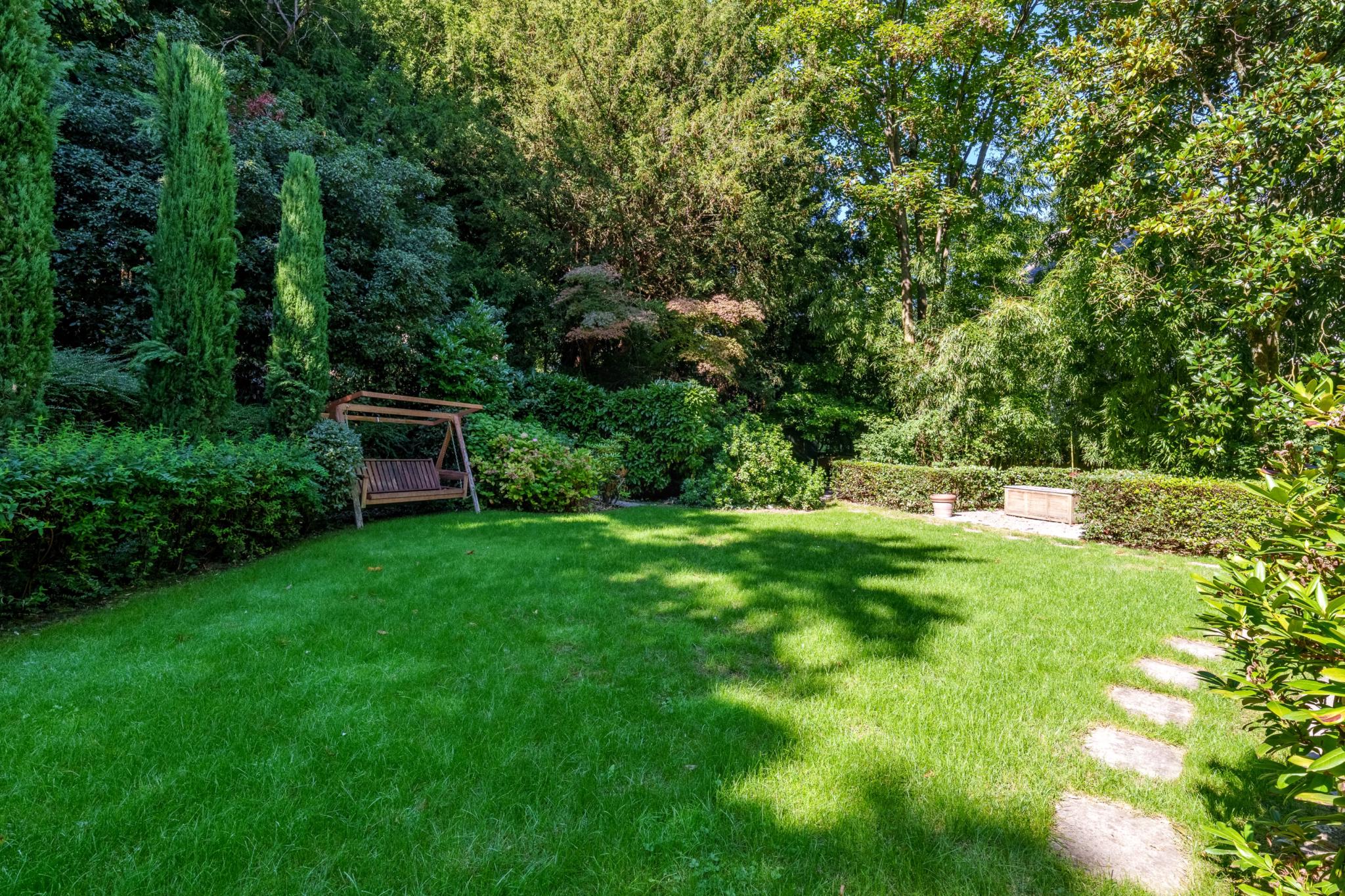 Un jardin magnifiquement arboré et clôturé, un garage 2/3 places ainsi qu'une place de parking extérieure complètent ce bien d'exception.