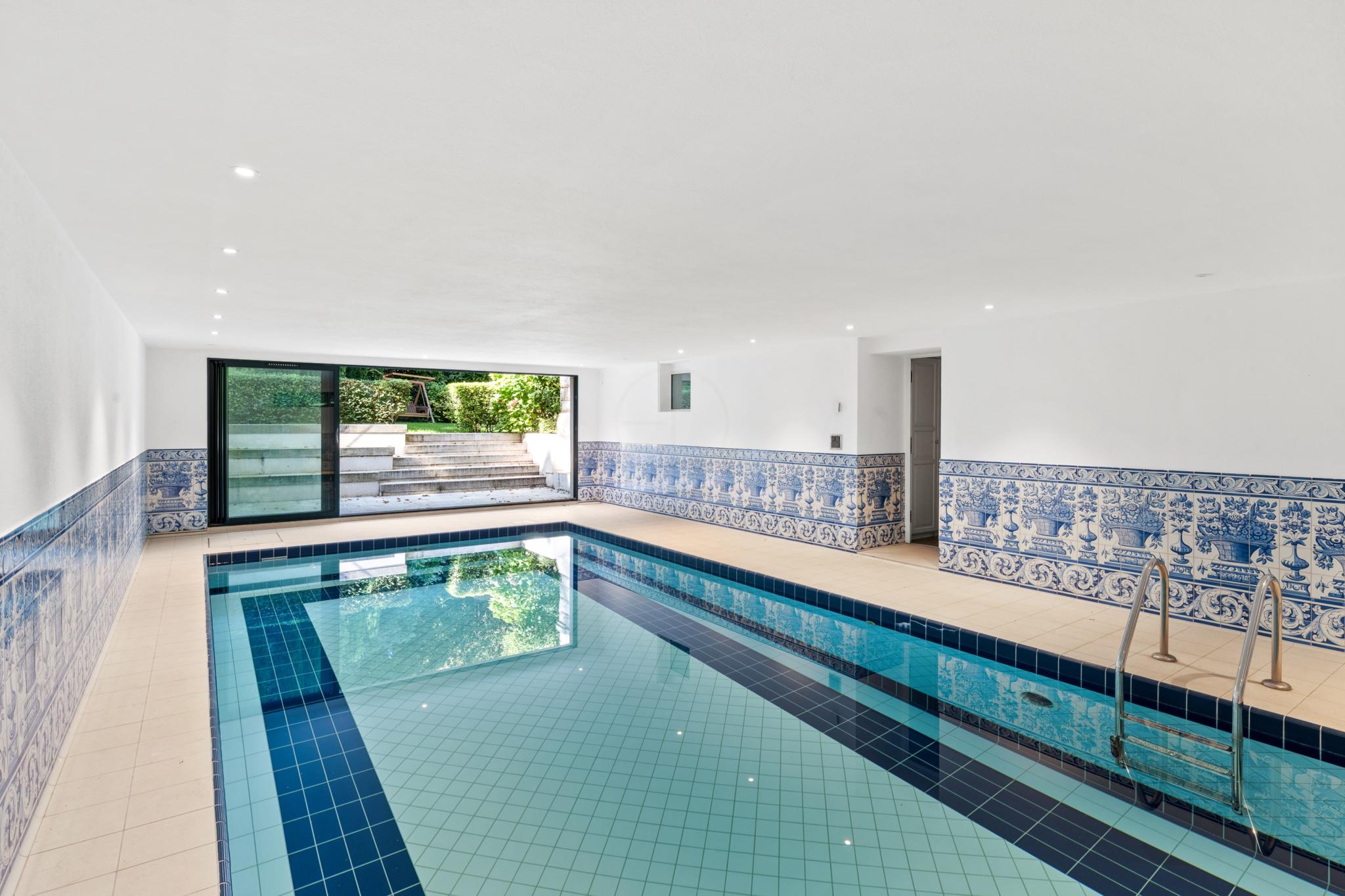 Le sous-sol comprend une salle de jeu/bibliothèque, une grande buanderie, un WC, une salle de douche, une grande pièce de rangements, un carnotzet et une piscine ouverte sur le jardin.