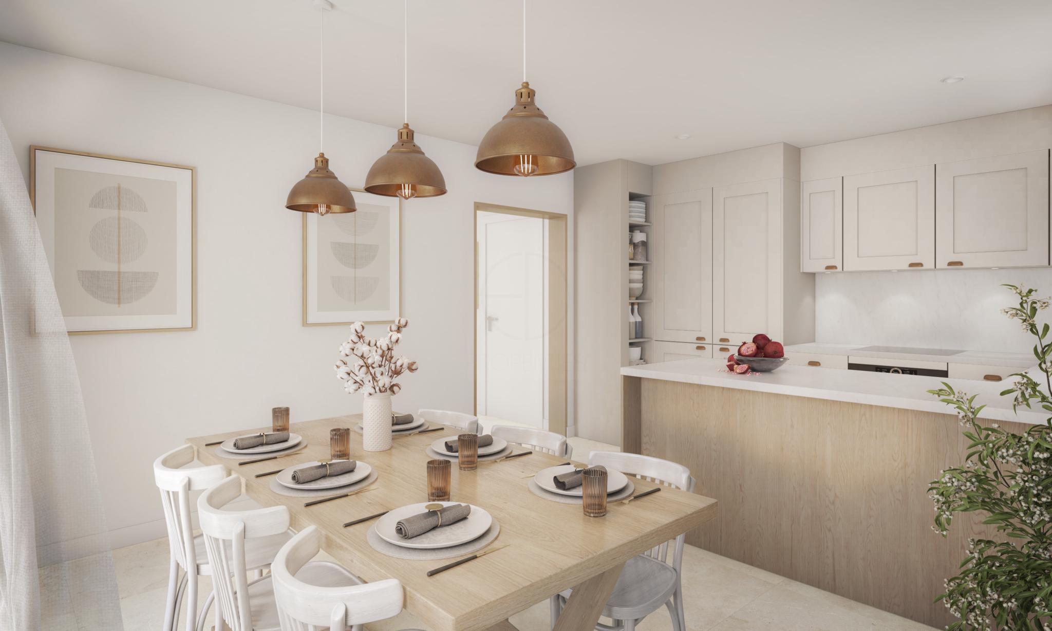 • une cuisine contemporaine ouverte sur une salle à manger conviviale,