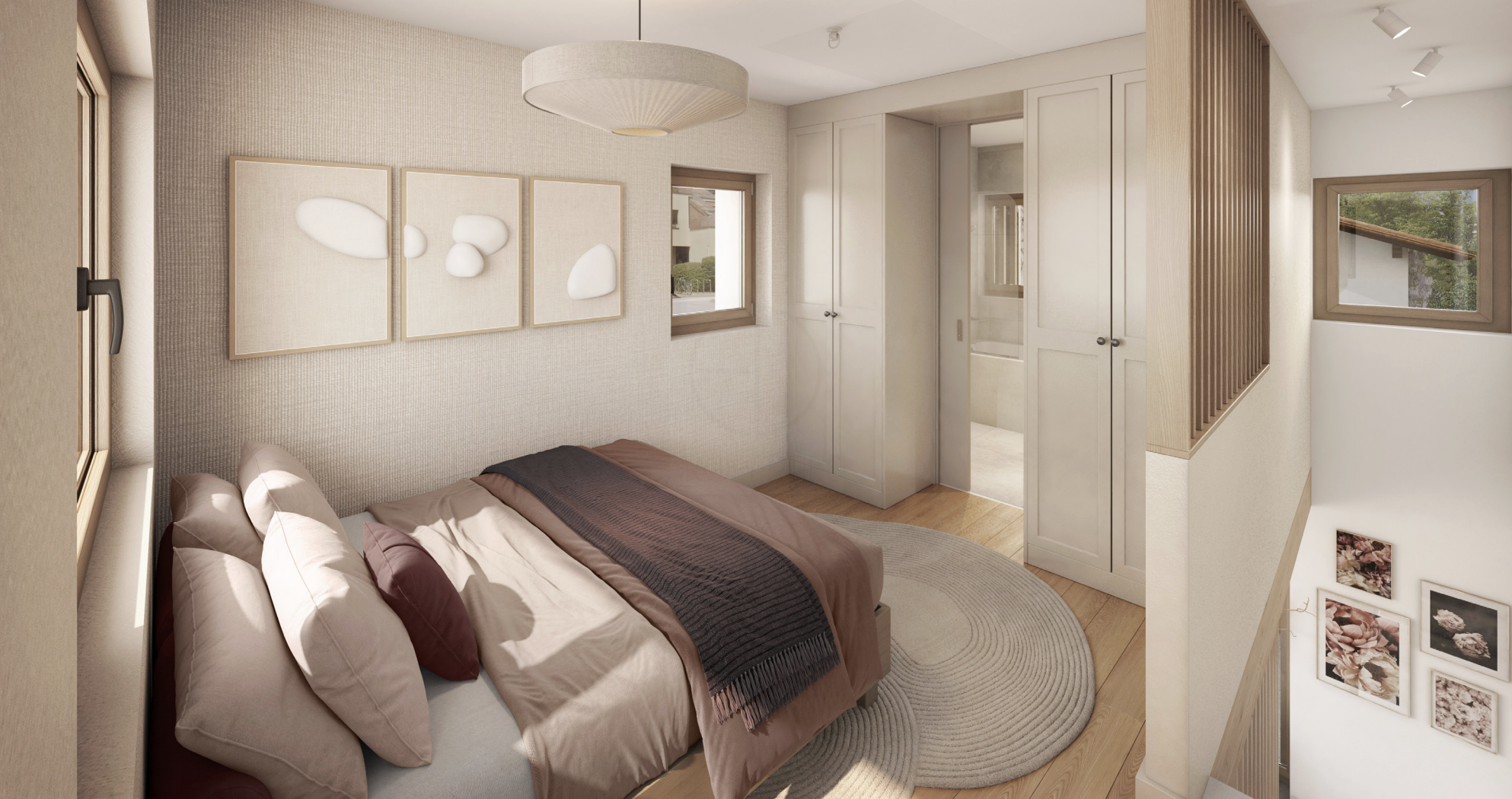 À l’étage se trouvent une belle chambre ainsi qu’une salle de bains.