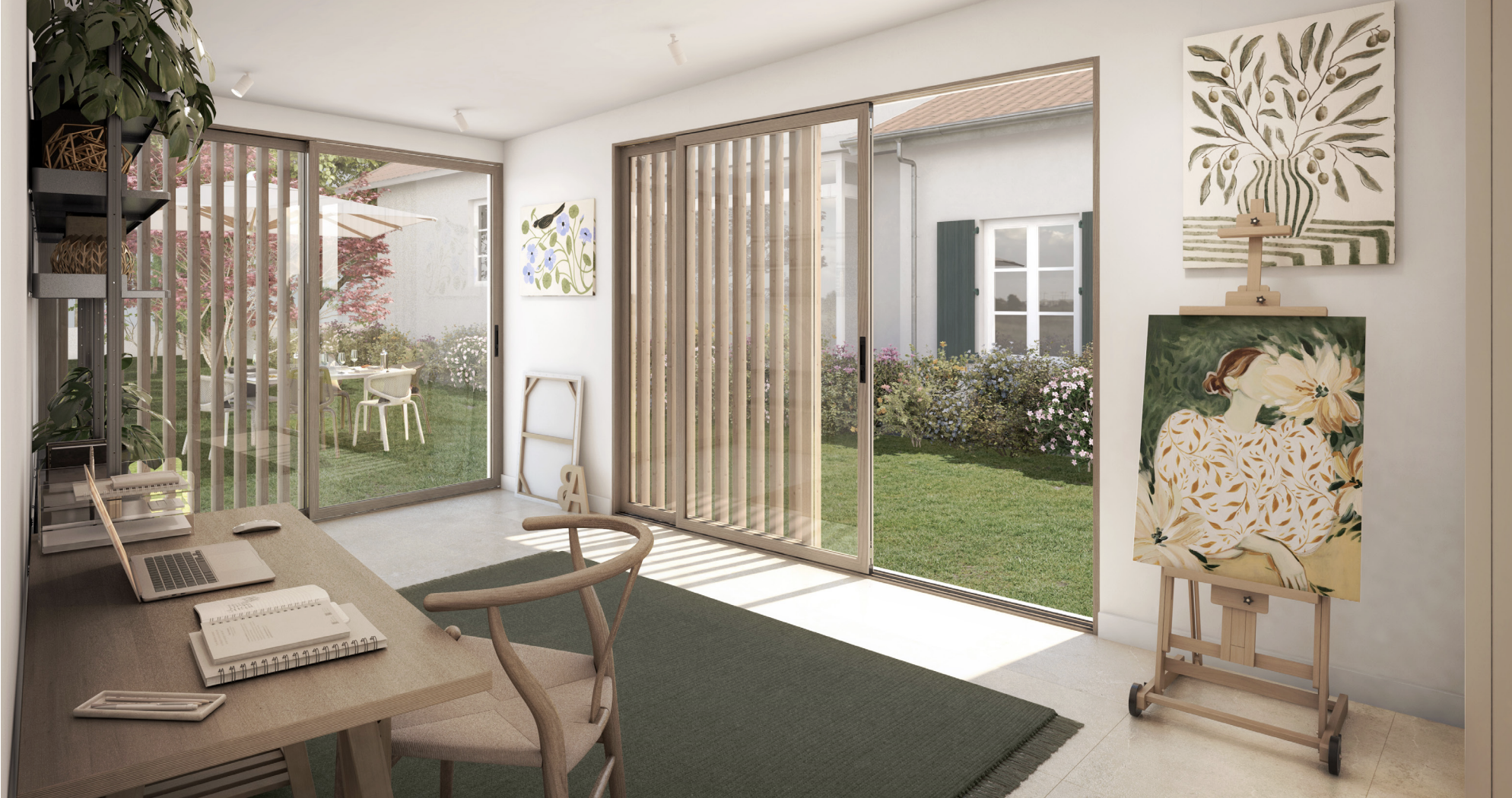 Conçue selon les standards HPE, la maison est équipée d’une pompe à chaleur et de panneaux solaires, garantissant de très bonnes performances énergétiques.